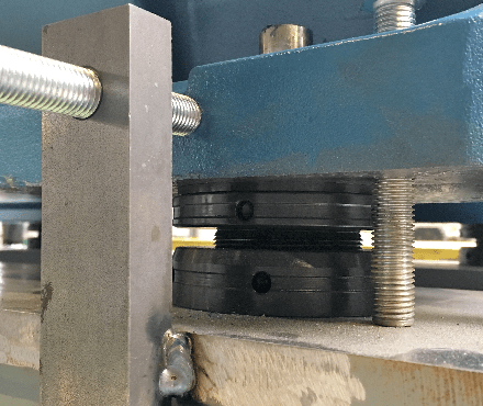 El perno de la base atraviesa el orificio central del RotaChock®, sujetando firmemente la base de la máquina, el RotaChock® y la placa superior de la base. Cuando sea necesario realinear el equipo, simplemente afloje los pernos de la base y ajuste el RotaChock® BasicLine para lograr la alineación deseada. Esta capacidad de ajuste es inigualable en la industria y genera importantes ahorros de tiempo en comparación con otras soluciones de calzado.